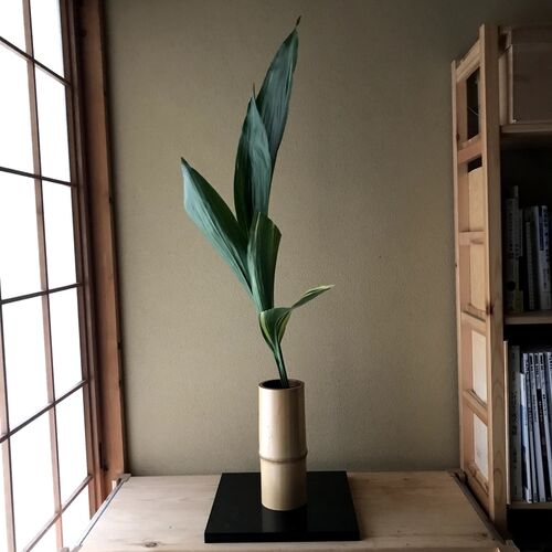 生花 三才格 | 葉蘭 華展終わりにいただいた花材の仕立て直し、第二弾。 あまり矯めずに、すっと伸びやかな生花にしてみた。花材の都合上、用の葉の陰陽が合っていないのが残念。