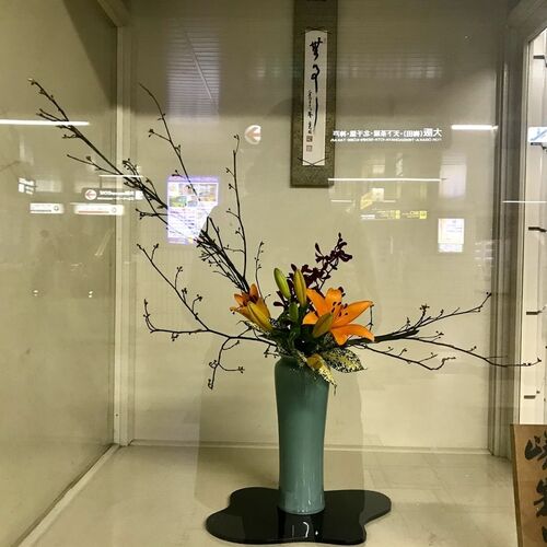 出島/文人流 知足会 駅のいけばな番外編。長崎は出島のいけばな。